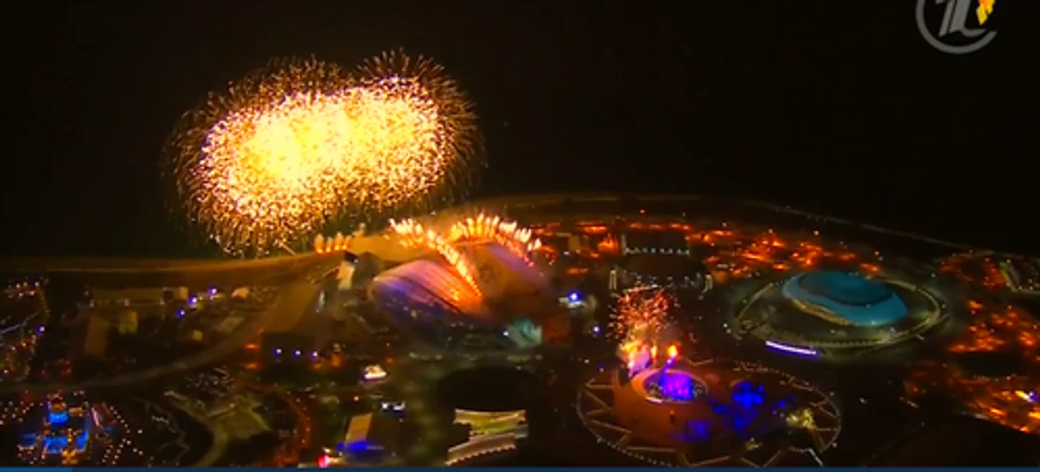 17.27 Также стало известно, что в самом конце церемонии будет грандиозный фейерверк из 3500 залпов. Просто вдумайтесь в эту цифру: заготовлено 22,5 тонны фейерверков.