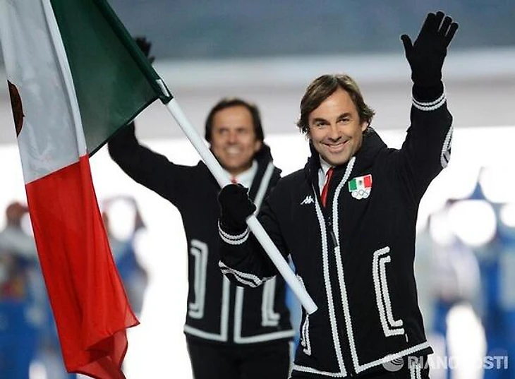 21.12 Мексиканский горнолыжник Хубертус фон Гогенлоэ несет флаг своей страны.