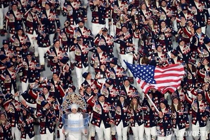 17.40 В Сочи же пока все спокойно. Сборная США готовится к церемонии. Форму для спортсменов эксклюзивно разработал Ralph Lauren.