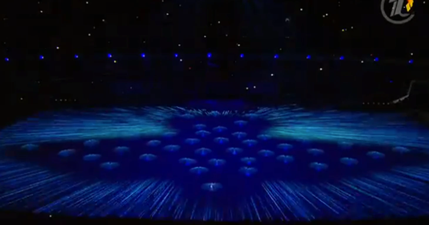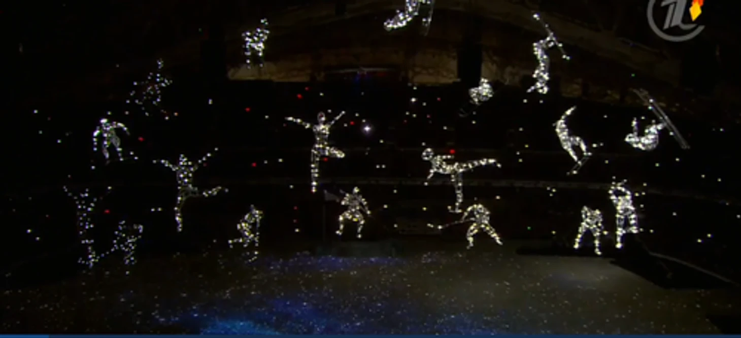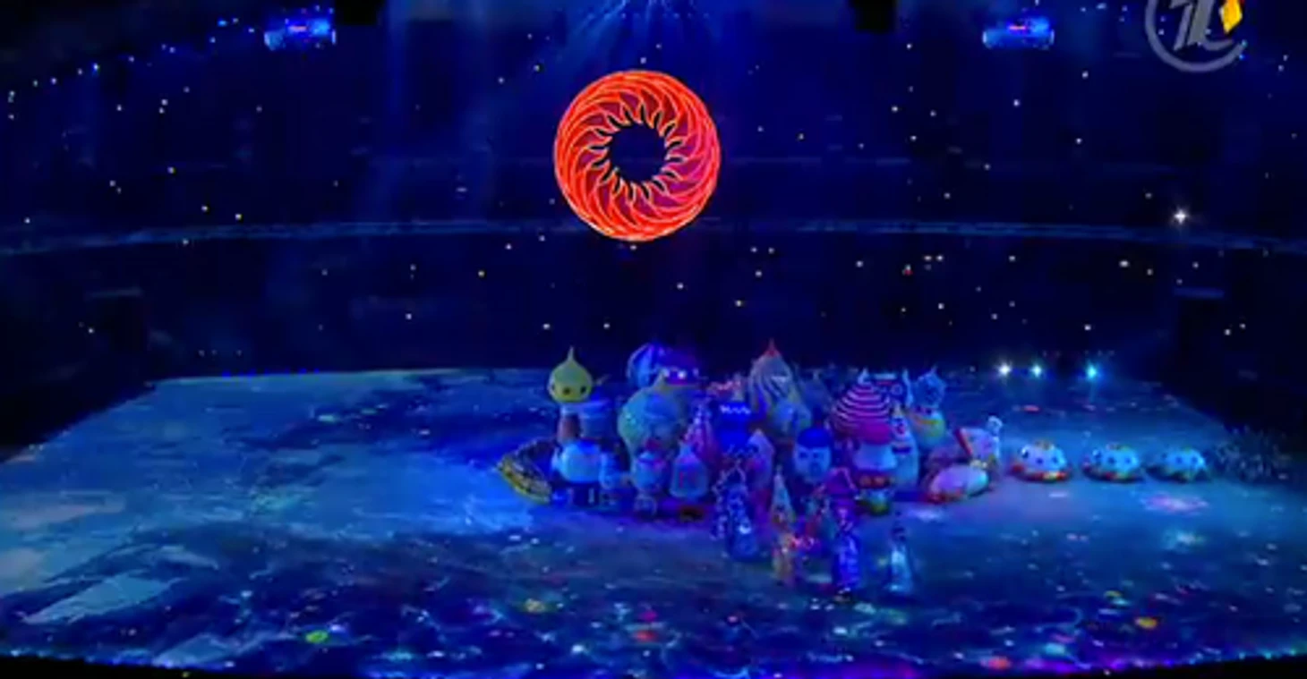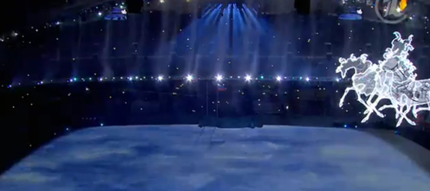 20.24 Над страной идет снег – снежинки превращаются в большие светила, похожие на солнце, а потом становятся олимпийскими кольцами. Так в страну приходит Олимпиада.
