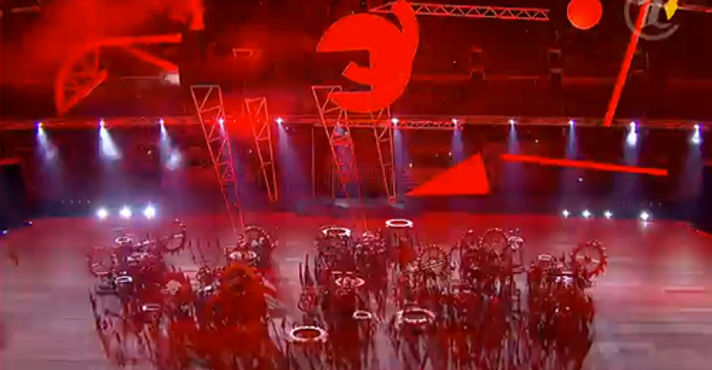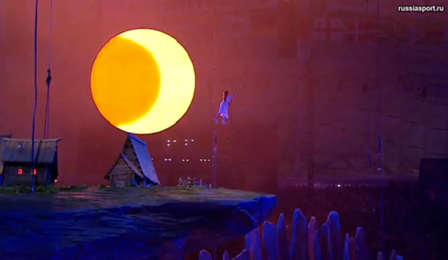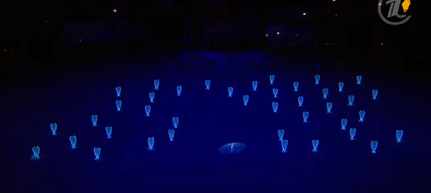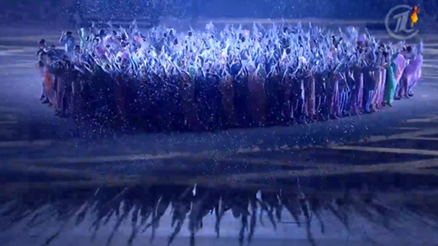 20.24 Над страной идет снег – снежинки превращаются в большие светила, похожие на солнце, а потом становятся олимпийскими кольцами. Так в страну приходит Олимпиада.