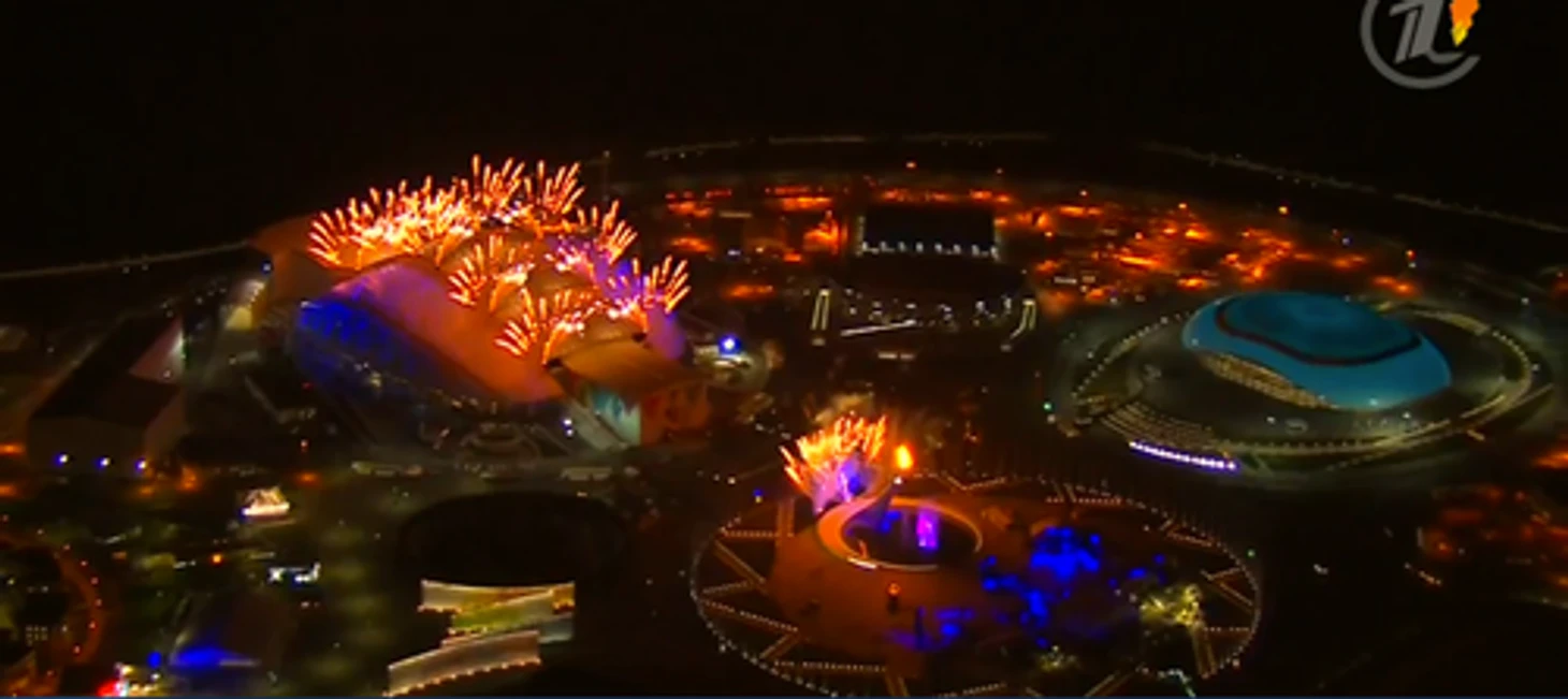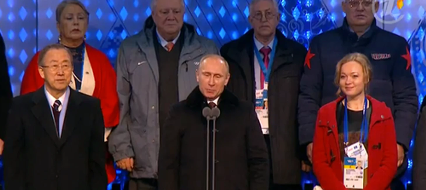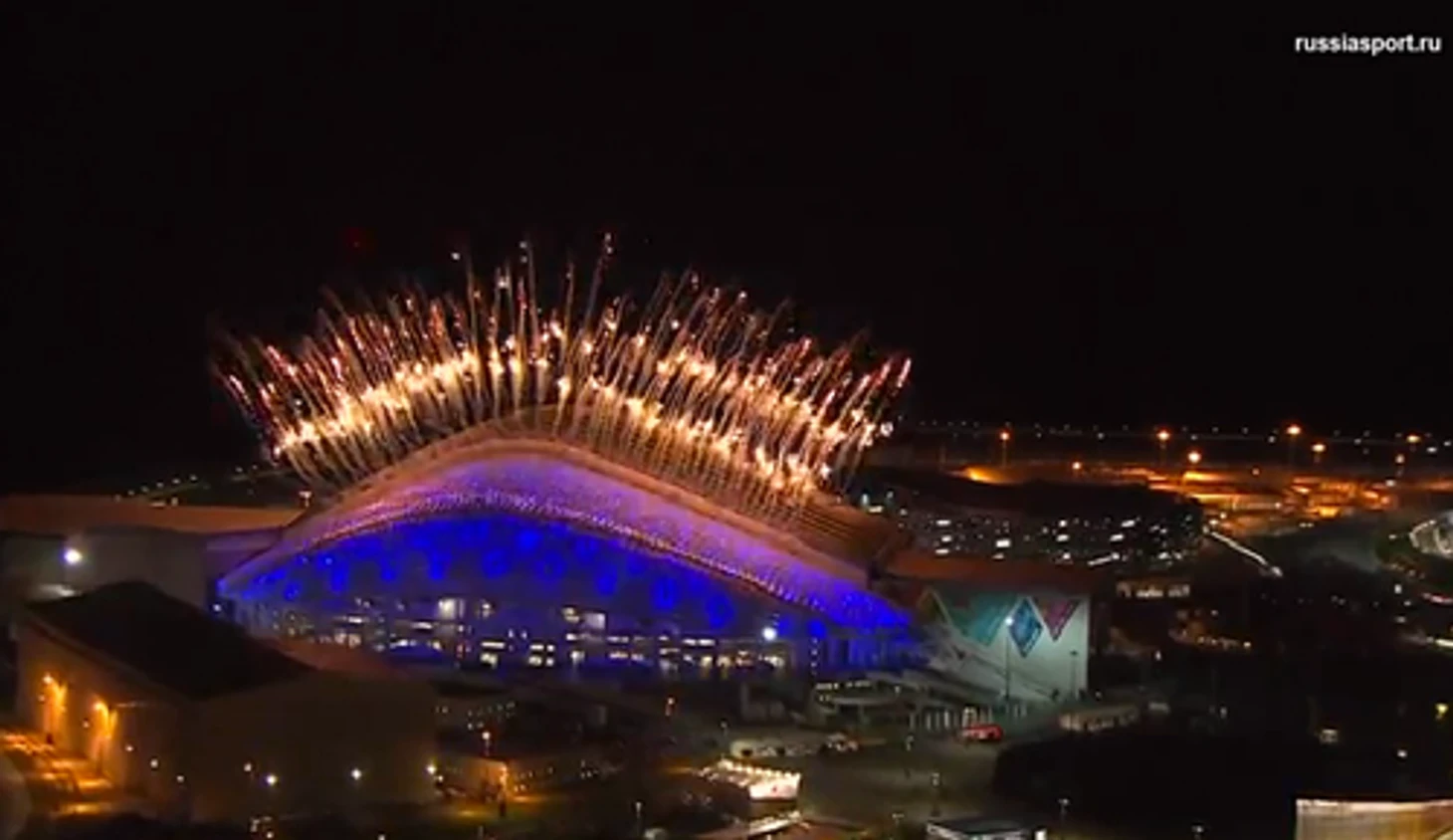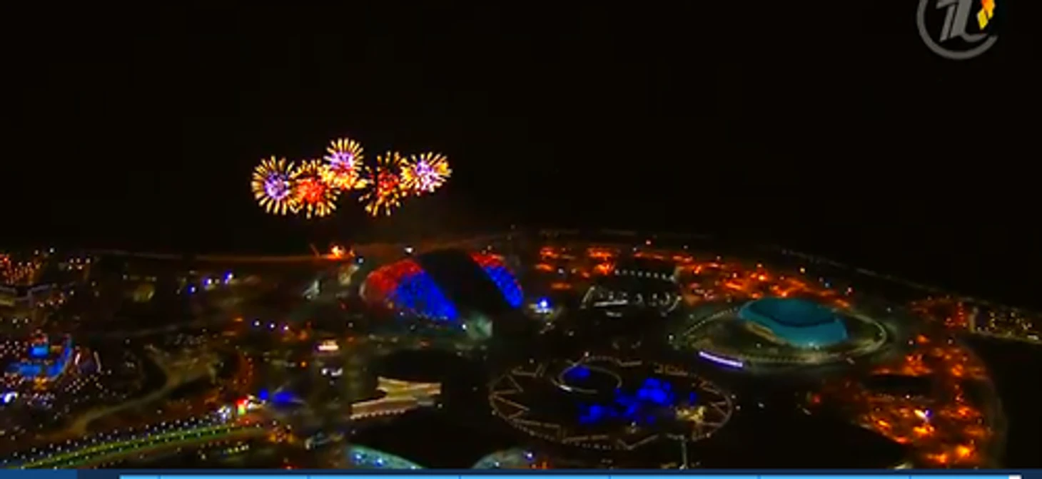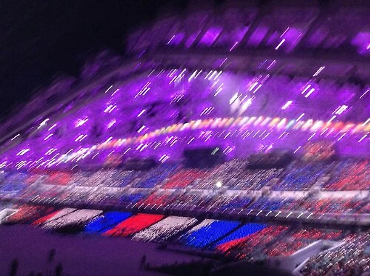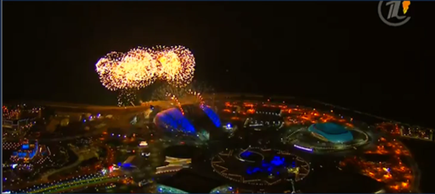 22.26 Путин официально объявляет Игры открытыми! Над «Фиштом» разрываются фейерверки.
