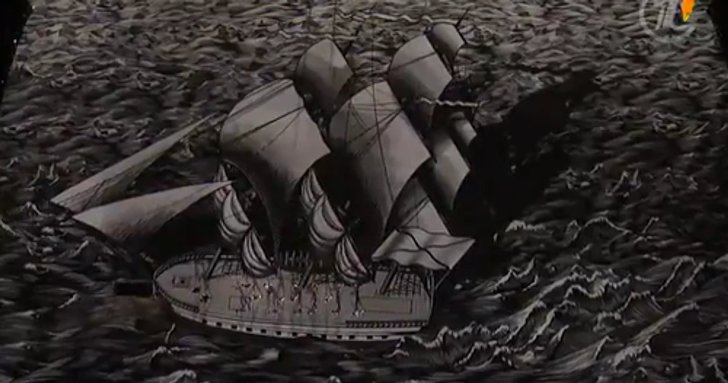 21.37. Лед внизу разламывается – появляются очертания России. К маленькой девочке Любови, которая по-прежнему находится в очаровании «снов о России», приближается шар, в котором отражаются очертания будущего.