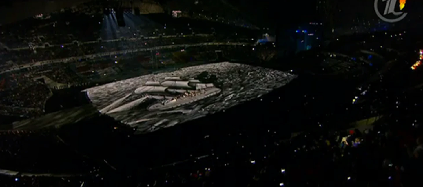 18.48 Наш спецкорр в Сочи Павел Копачев прибыл на стадион «Фишт» и обнаружил интереснейшую деталь шоу.