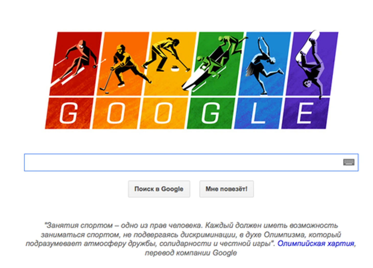 18.10 В стороне от Олимпиады не остался и Google. Важному событию был посвящен радужный дудл.