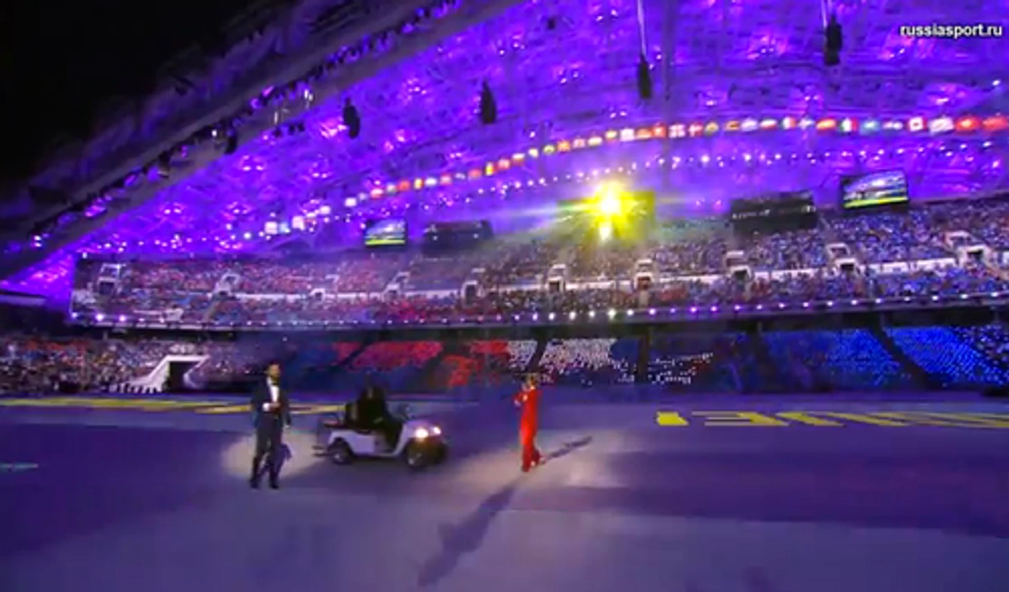 17.16 Церемония будет еще и очень технологичной: «Мы сделали так, что проход 88 стран-участниц Игр будет быстрее и динамичнее, чем обычно. На «Фиште» мы сделали специальный пол, на котором будет проецироваться вид из космоса на ночную Землю. В зависимости от страны, которая должна будет появиться на стадионе, Земля поворачивается так, что вы падаете на географическую точку, в которой она расположена. В ее центре будет открываться рамка, из которой выйдут спортсмены», – рассказал Эрнст.