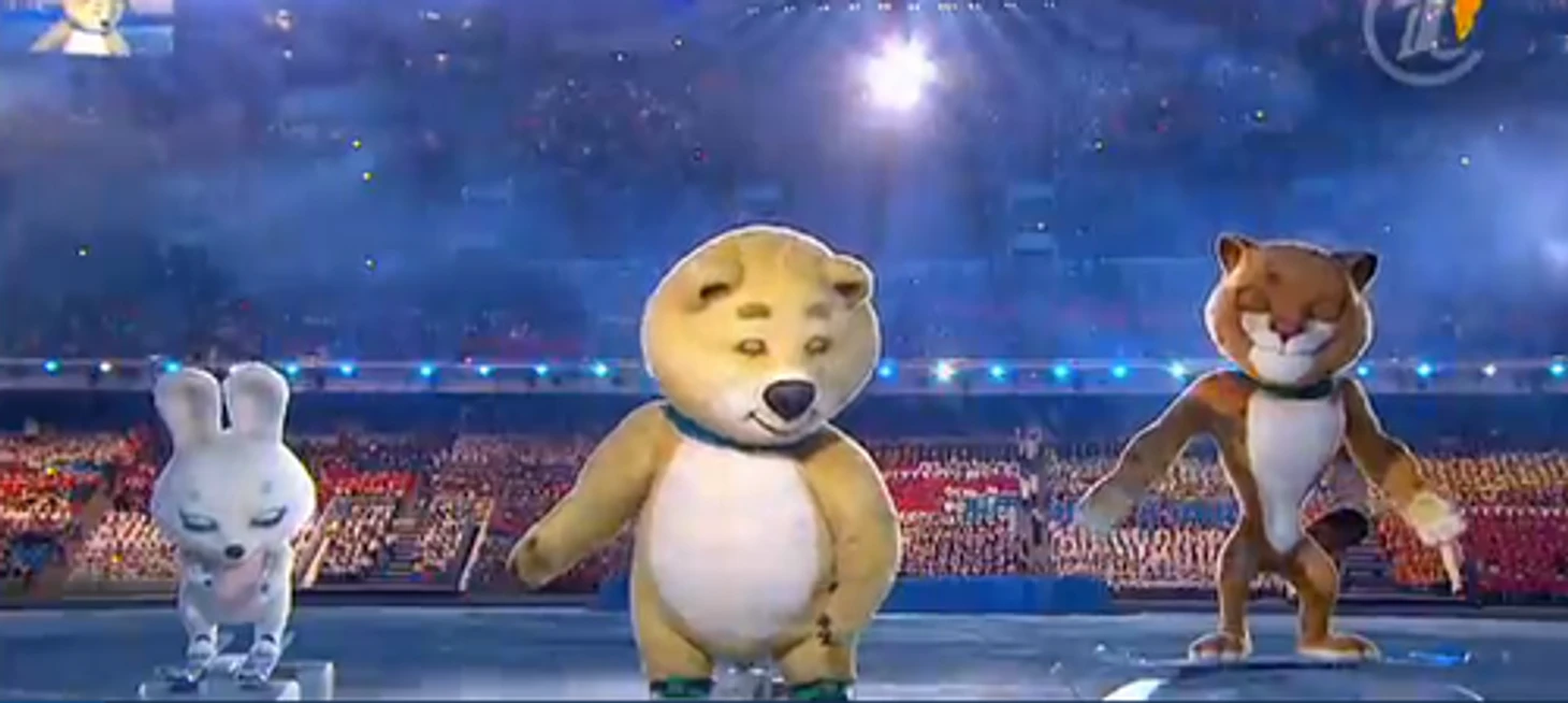 21.32 Да-да-да, трио маскотов появляется под музыку из «Ну, погоди!»