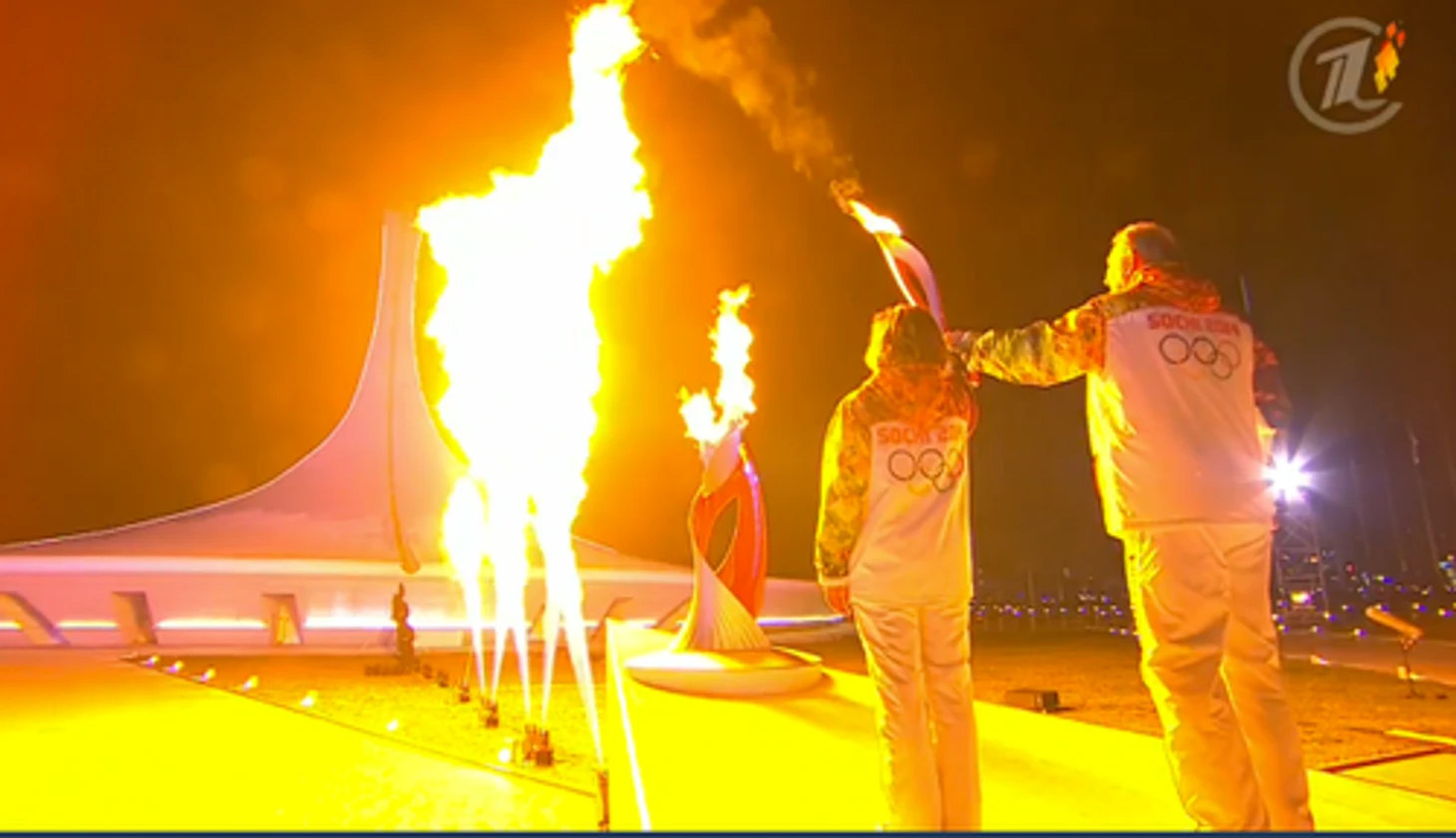 21.00 Англоязычный твиттер обсуждает, что в самом начале церемонии не раскрылось одно из пяти колец. Мы не конспирологи, никого ни в чем не обвиняем, но на ТВ-картинке на Первом канале все кольца раскрылись. Скриншот от 20.24 это подтверждает.