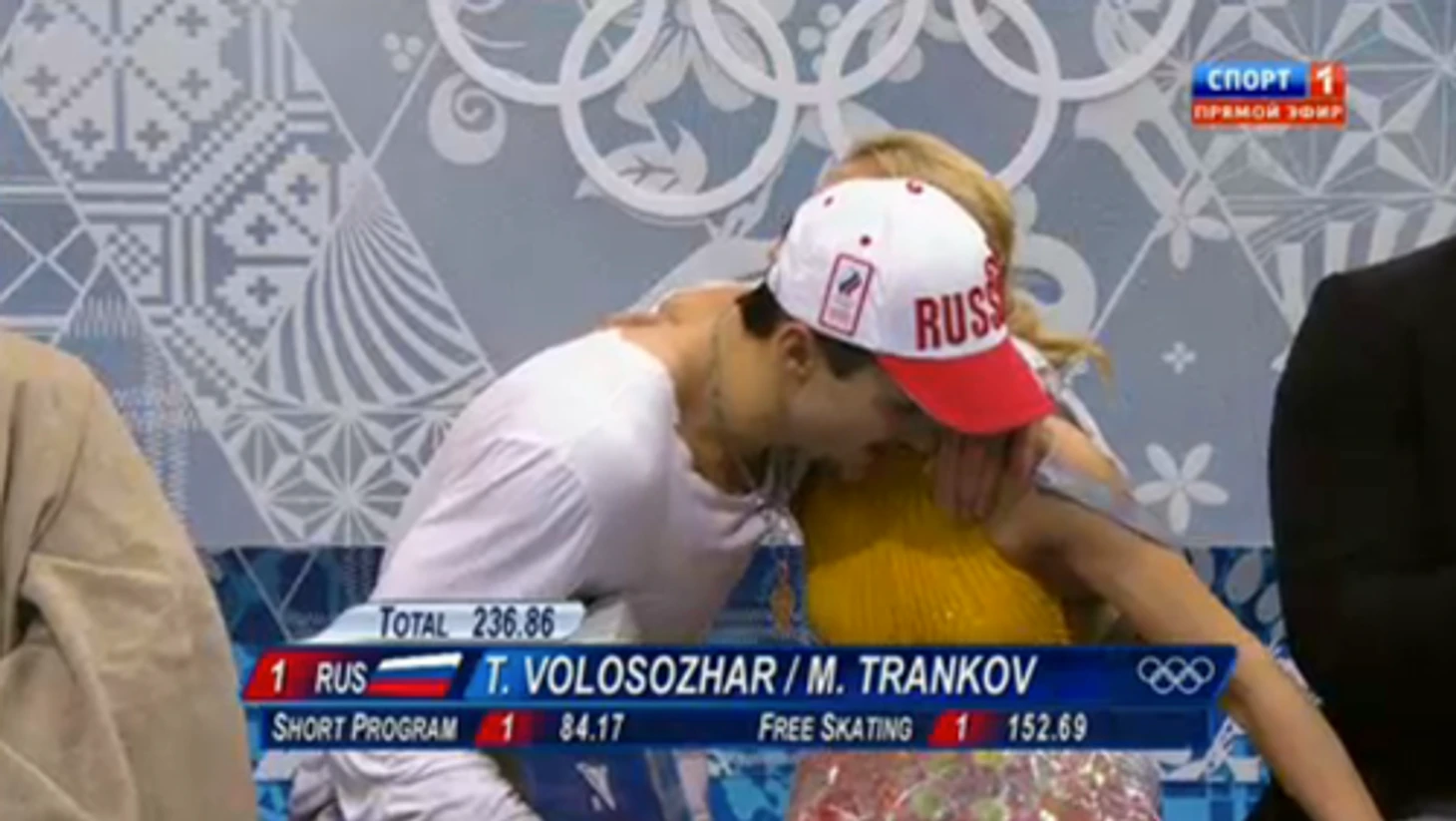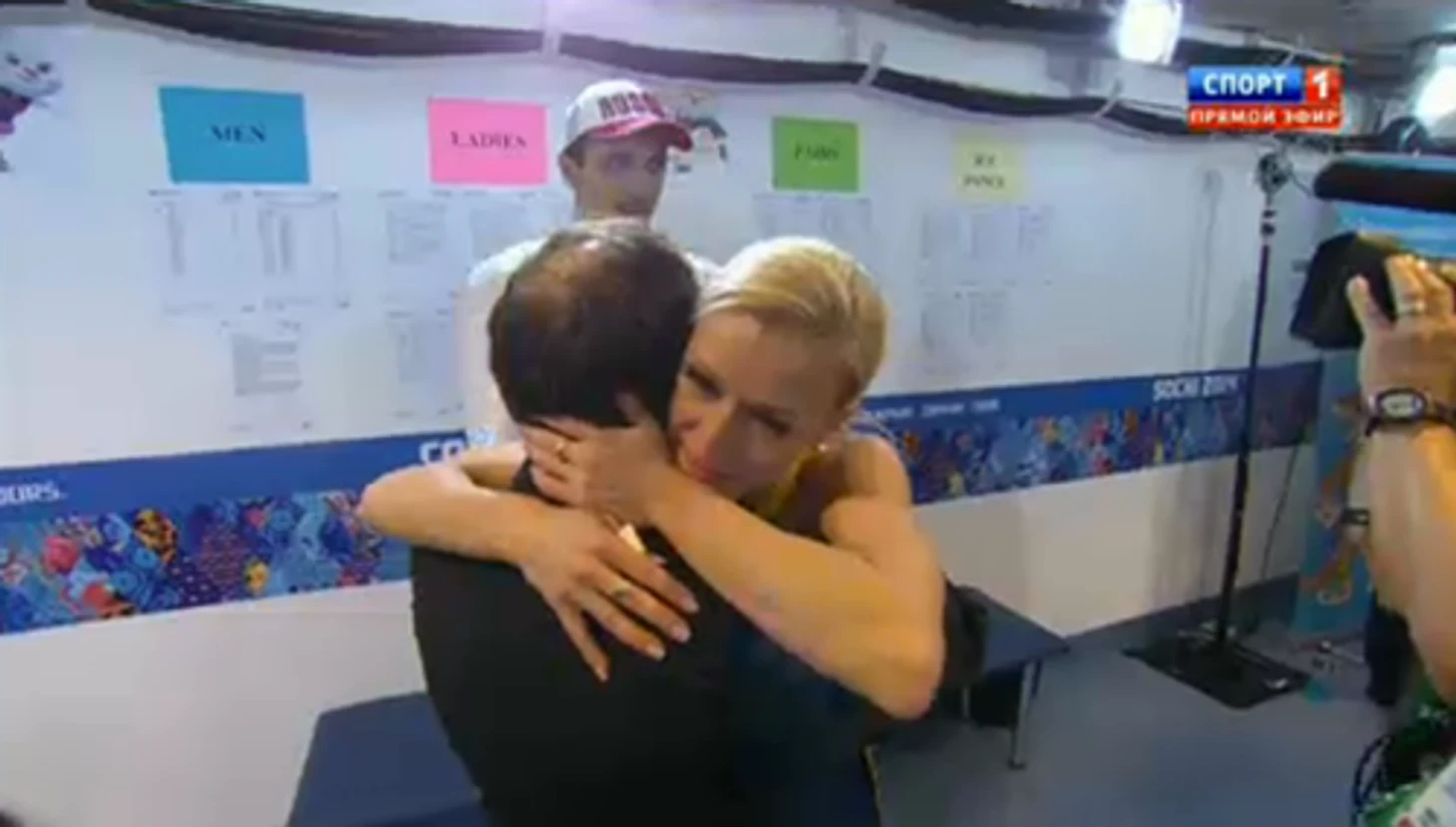 22.48 Максим Траньков и Татьяна Волосожар принимают поздравления в подтрибунном помещении.