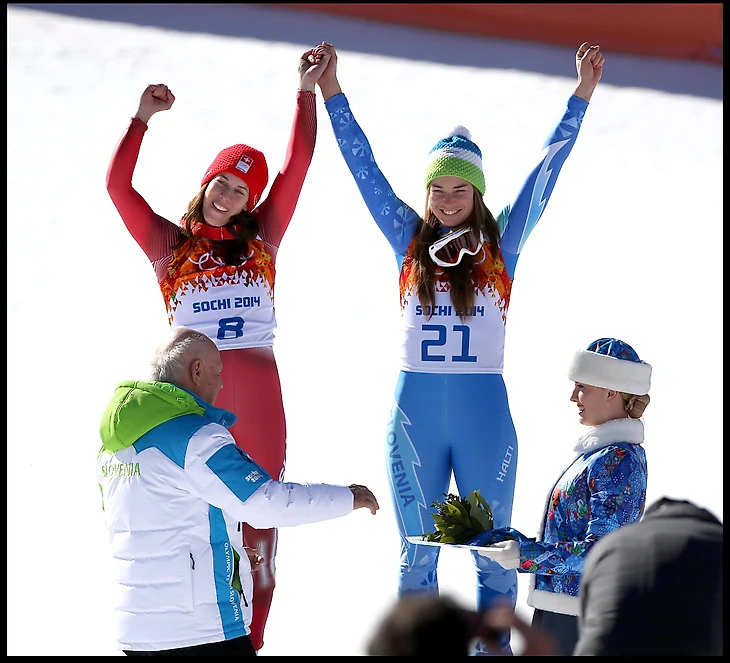 14.50 Разделившая золотую медаль в скоростном спуске Тина Мазе: «Невероятно, какие доли секунды важны в нашем спорте. Наверное, в этом его прелесть»