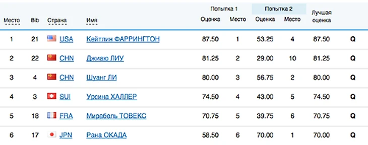 15.00 Квалификация в женском хафпайпе идет без участия россиянок. Девушки, увы, продолжают падать: Ханна Триггер из Австралии перекувыркнулась через голову.