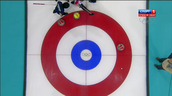15.40 Ай-яй-яй! Анна Сидорова проваливает последний бросок в шестом энде, а ведь нужно было всего лишь поставить камень так, чтобы он оказался ближе к центру, чем 2 красных камня. Отставание растет: 2:4.