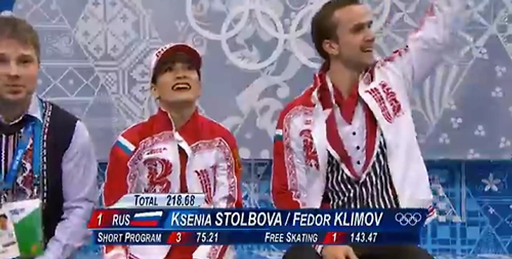 22.34 Как минимум бронза будет у Ксении Столбовой и Федора Климова! Китайская пара Цин Пан – Цзянь Тун занимает только третье промежуточное место с суммой 209.88.