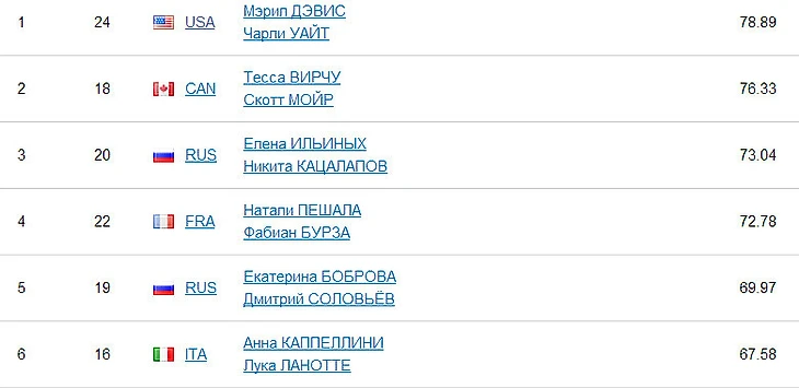 20:17 Продолжаются танцы на льду. 9 пар уже выступили, и Синицына-Жиганшин пока третьи. Две другие российские пары выступают под 19-м и 20-м номером. Ждем.