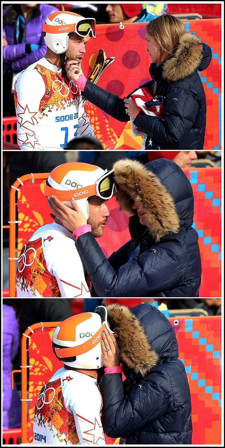 13.20 Ветеран Боде Миллер празднует свою шестую олимпийскую медаль с женой: