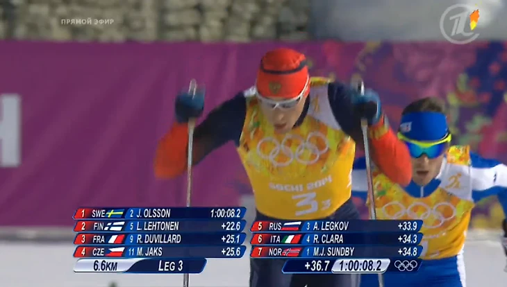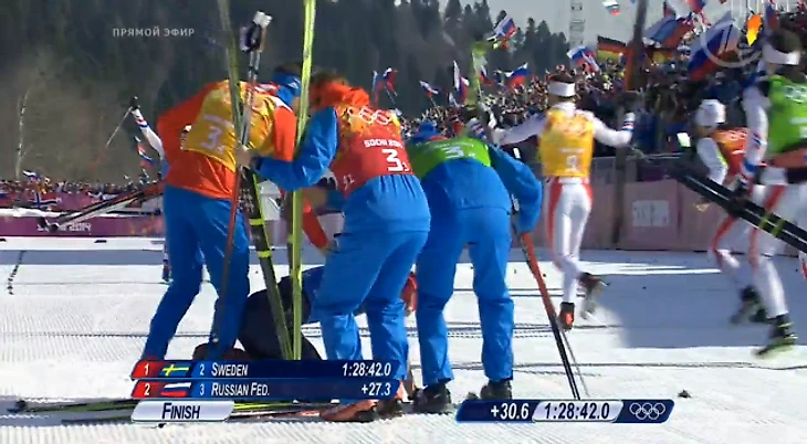 15.44 Шведы берут свою очередную медаль в лыжных гонках в Сочи (других у них просто нет), ну а у нас первая олимпийская медаль в мужской эстафете со времен СССР!