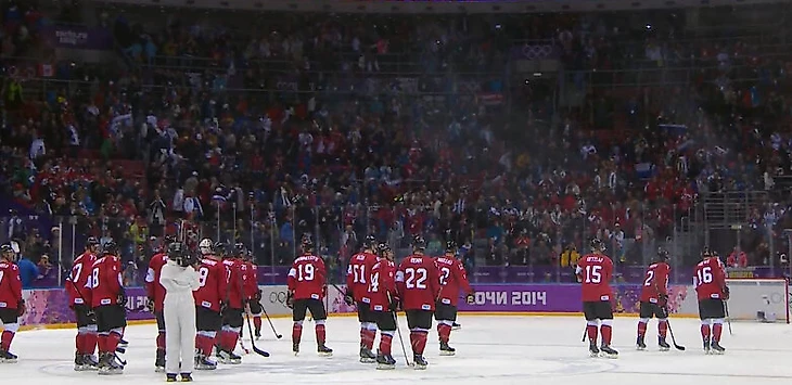 16.10 Один матч уже был сегодня сыгран – Австрия обыграла Норвегию 3:1, а еще они разбили заградительное стекло: