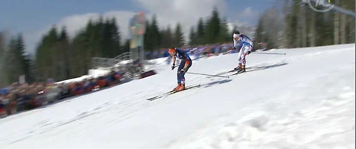 15.17 Ай-яй-яй, француз подбирается к Вылегжанину! 6 секунд разрыва и совсем небольшой просвет! Ну а Хельнер в 30 секундах вдалеке.