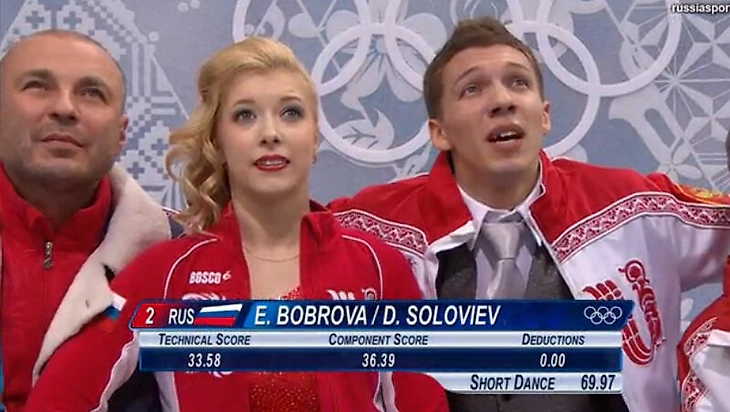 21:39 Канадская пара Вертью/Моир прекрасно выступила в танцах. Они – лидеры, а прямо сейчас на льду Боброва/Соловьев. Смотрим.