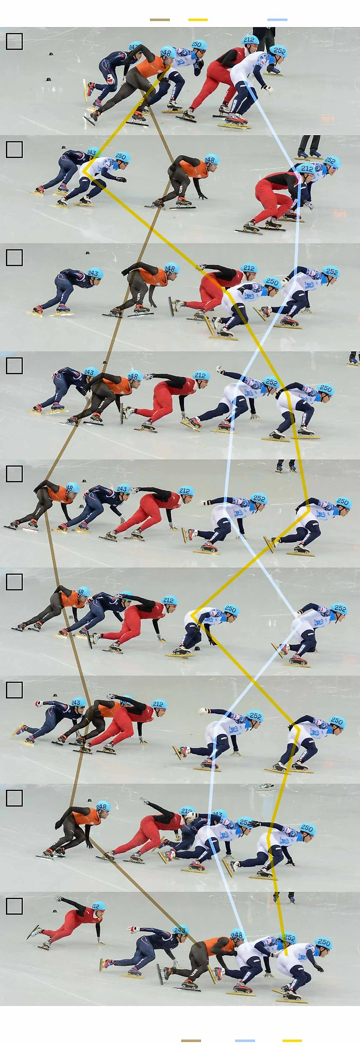 17.20 New York Times сделали очень интересный график победы Виктора Ана во вчерашнем финальном забеге в шорт-треке: