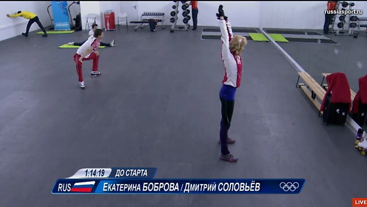 19:11 Началась короткая программа в танцах на льду. У России здесь три пары: Боброва-Соловьев, Ильиных-Кацалапов и Синицина-Жиганшин.
