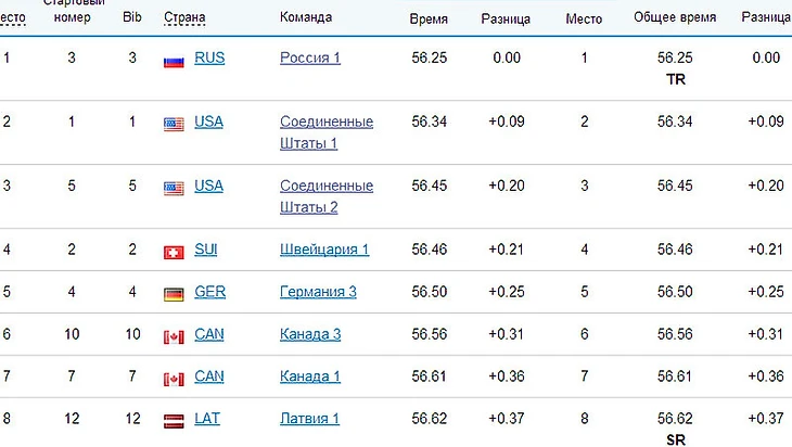 22:10 Латвийский телеканал LTV не может успокоиться после победы Третьякова над Дукурсом. Причина, мягко говоря, странная. В Сочи у Третьякова был лучший разгон среди всех участников, при этом во всех четырех попытках зафиксировано одинаковое время — 4,47 секунды. Ни в одном из четырех заездов Третьякова не виден его полный разбег. В решающей попытке полностью были показаны забеги всех участников, за исключением россиянина. Здесь видео.