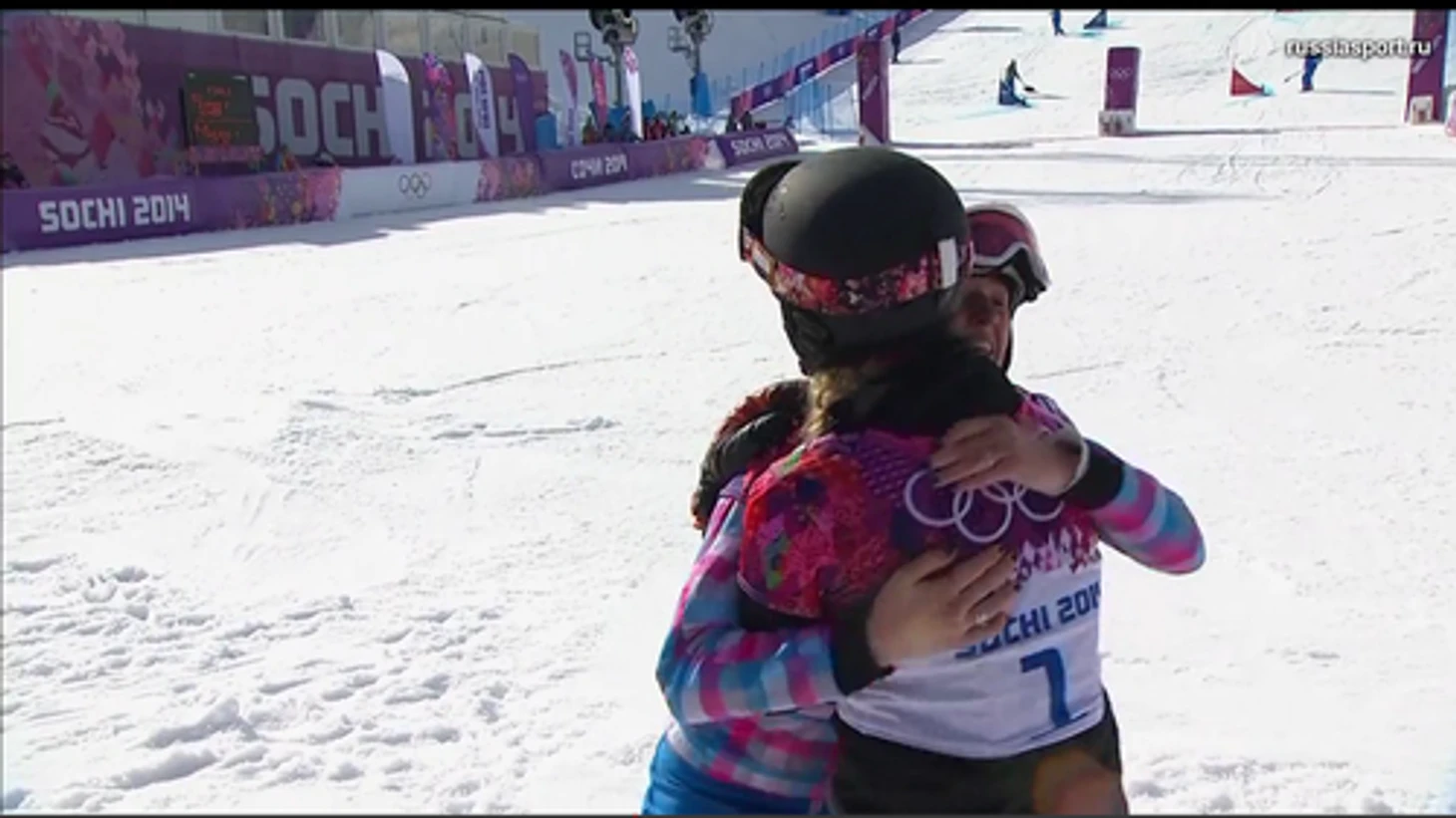 15.31 Конечно, Алена тут же прибежала поздравить мужа. 2 медали в сноуборде принесли нам сегодня россияне!