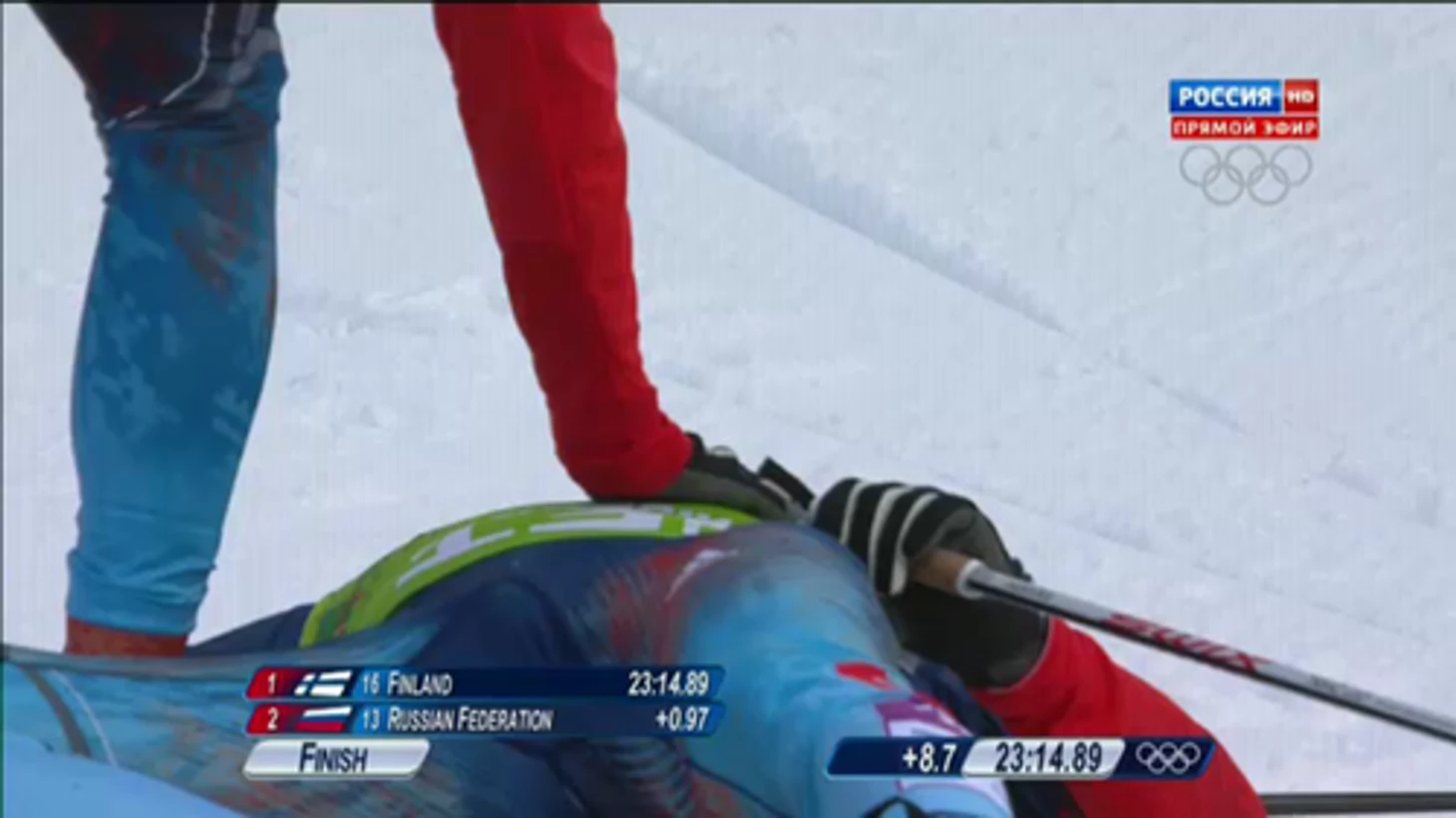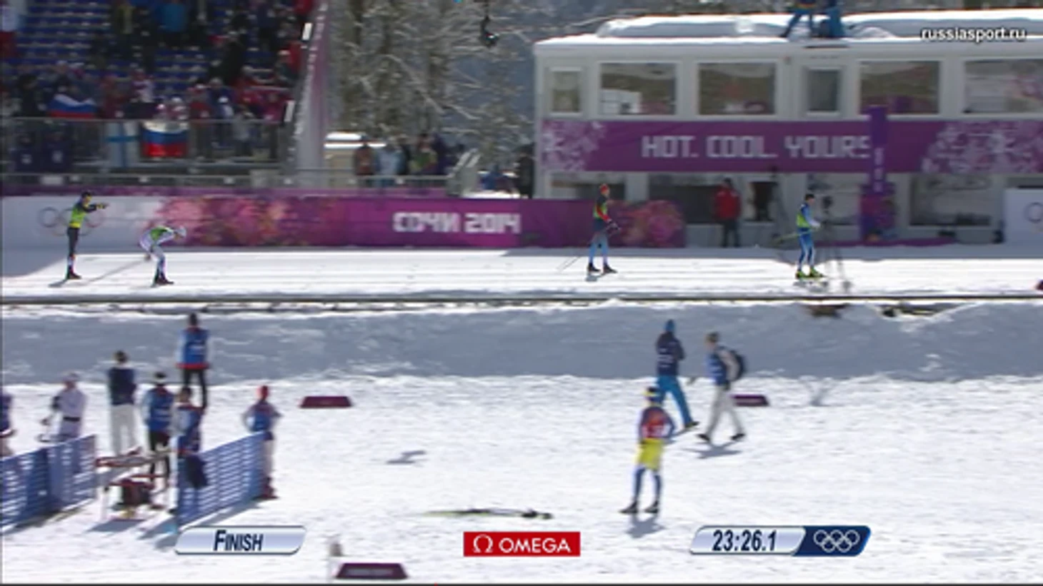 15.05 Крюков спокойно докатывает последние метры дистанции, Россия выходит в финал со второго места.
