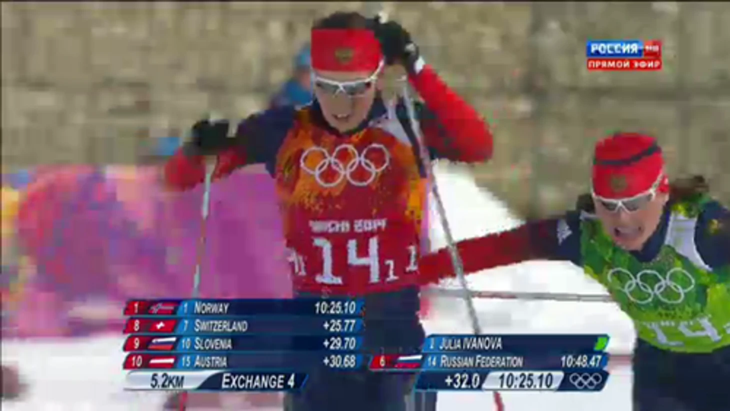 15.57 Доценко уходит на свой последний этап шестой. Норвежки и финки далеко, надежда на бронзу еще не умерла.