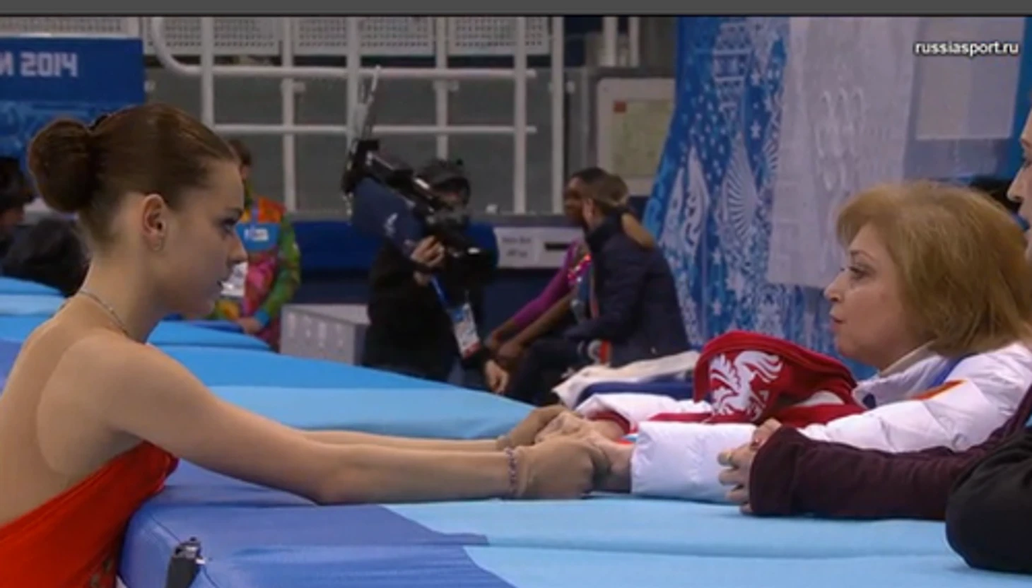 22.52 Как же жалко. Юля явно подавлена, тренер Этери Тутберидзе ее подбадривает.