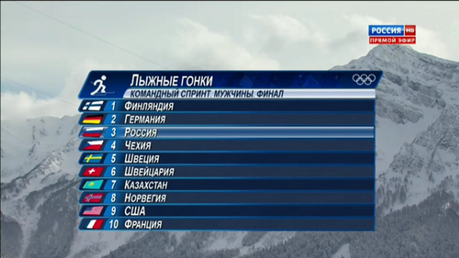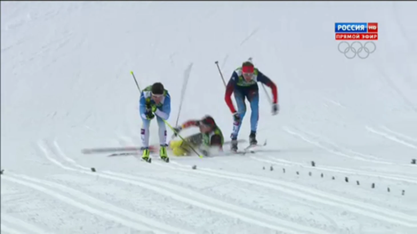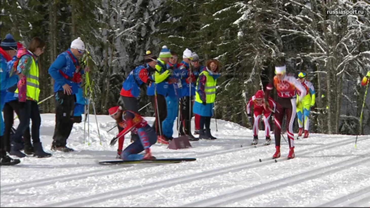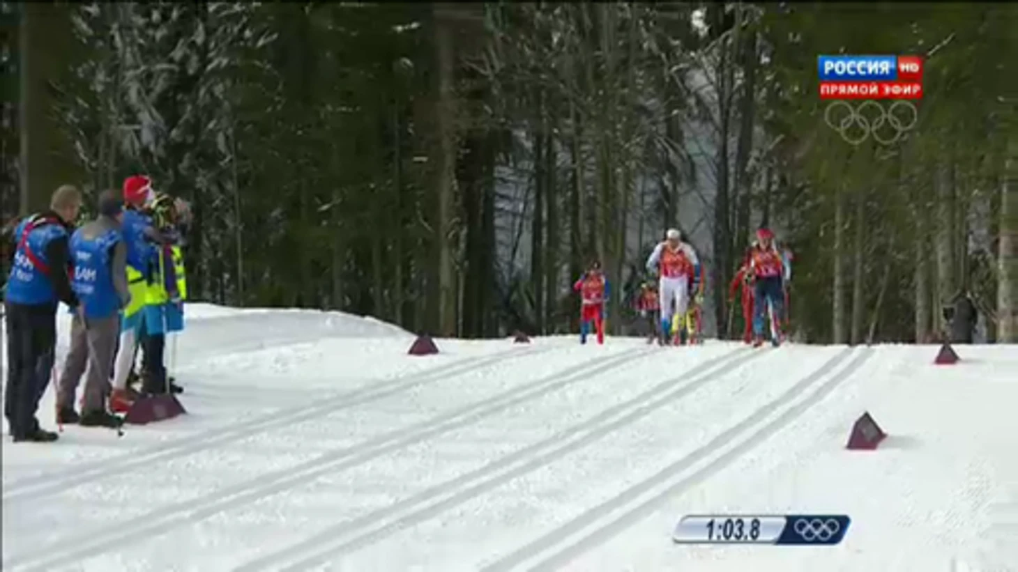 13.23 Почему-то в лыжном спринте второй забег начался раньше первого. Сборная России пока идет на четвертом месте, снова мы не избежали падений.