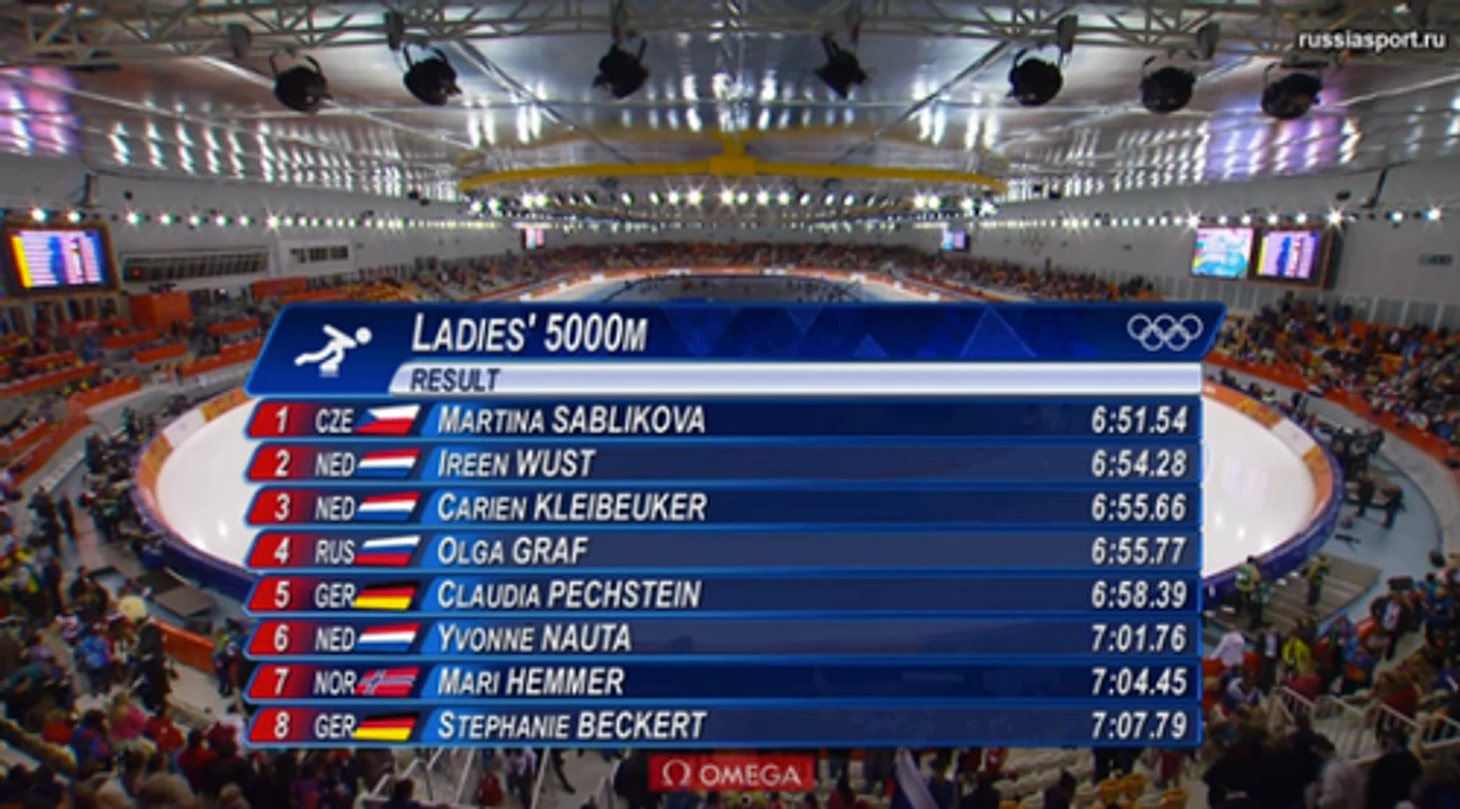 20.39 Наша конькобежка Ольга Граф, ставшая четвертой на дистанции 5000 метров, резонансно высказалась про WADA: «Были еще разговоры: вот, Граф накачали, Граф на допинге. Мы находимся под жесточайшим контролем ВАДА. И такое ощущение ,что русских там особенно сильно «любят»: я каждые два дня ходила сдавала анализы на допинг». Жестко.