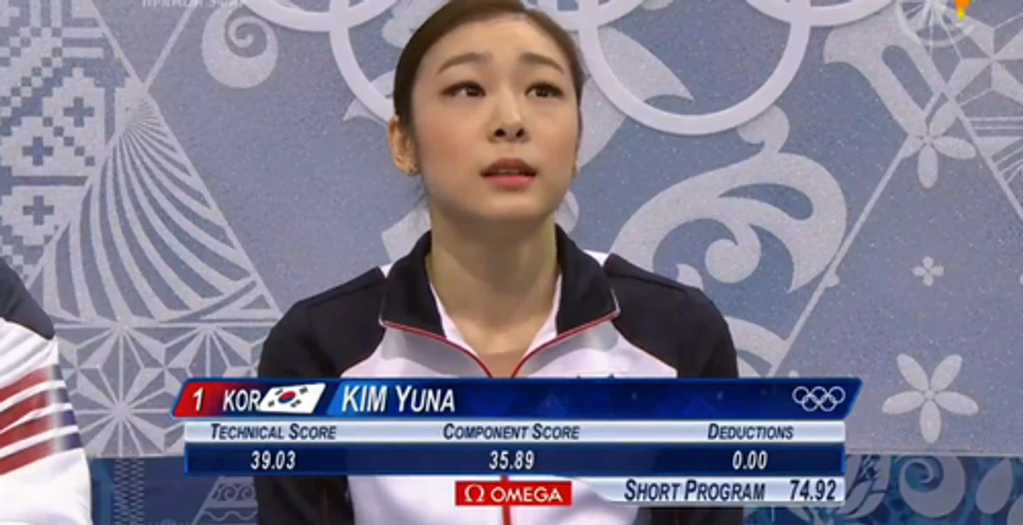 21.29 Тем временем в третьей разминке выступила Ю-На Ким. Кореянка прекрасно откатала короткую программу и набрала 74.92 балла. Это больше действующего рекорда Юлии Липницкой (72.90).