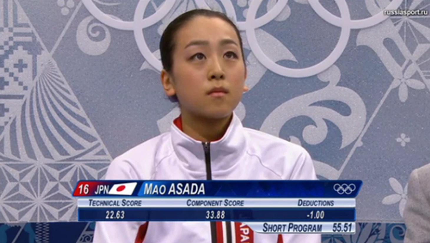 23.23 Мао Асада упала при исполнении прыжка в начале программы – по сути, она прощается с мечтами о золоте Сочи-2014. Уж слишком большая плотность в таблице.