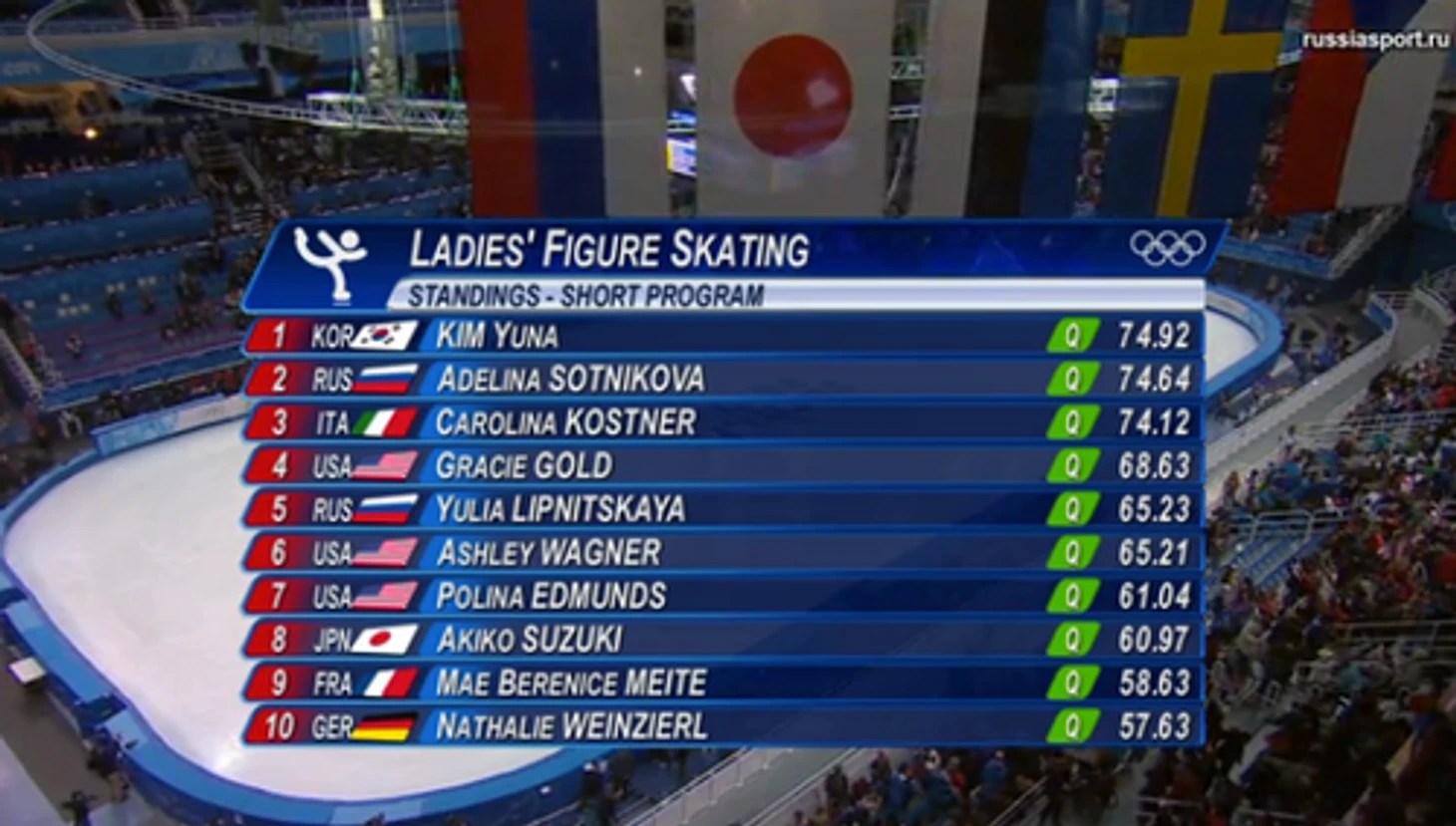 Липницкая проигрывает Грейси Голд 3.40 балла, Костнер – 8,89 балла, Сотниковой – 9,41 балла, Ю-На Ким – 9,69 балла.
