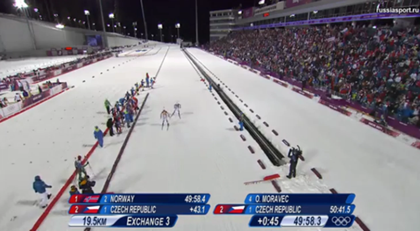 19.23 Пишем Хроники падения русского биатлона: Гараничев еще проиграл итальянцу Виндишу ногами, перед последним этапом мы отстаем от третьего места на 1 минуту и 10 секунд. Пока, медаль?