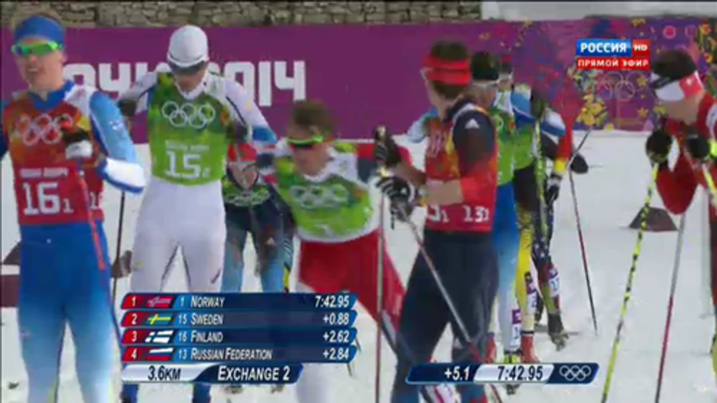 14.52 На третьей передаче эстафеты Россия шестая. Не пора ли отрываться? Наверняка Вылегжанин включится на своем последнем этапе.