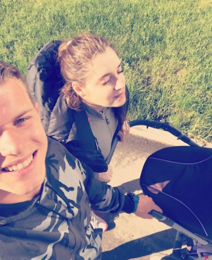 Муж спортсменки сегодня опубликовал в инстаграме фотографию с прогулки с ребенком.