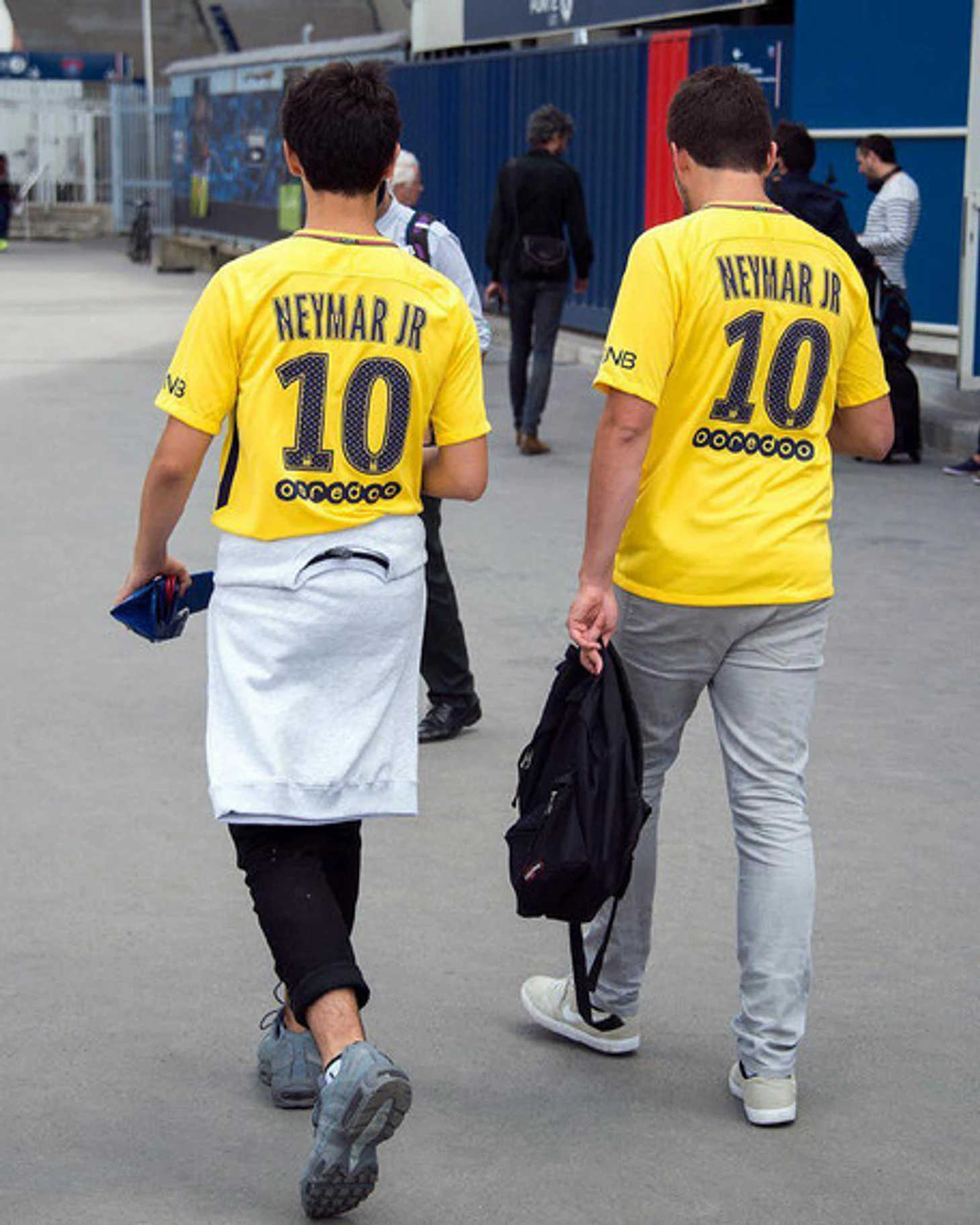 Футболки с Неймаром уже продаются и на официальном сайте парижского клуба. Точно такая же футболка, как носят игроки, стоит $132,58, болельщицкий вариант попроще (на вид почти одинаковые) – $91.40. Домашняя и выездная форма стоят одинаково.