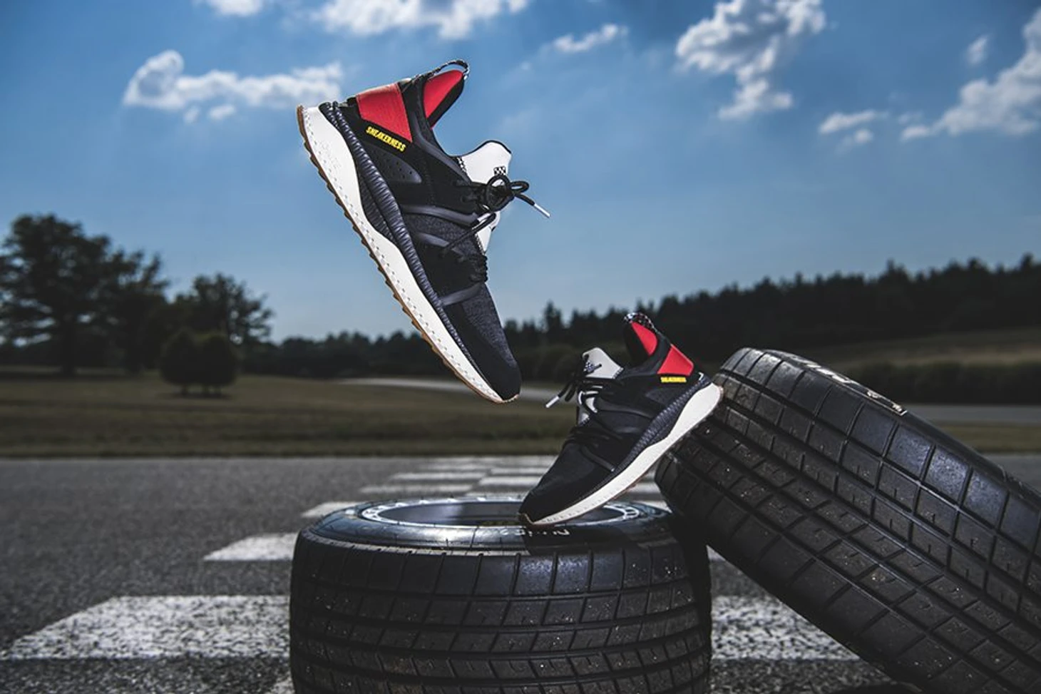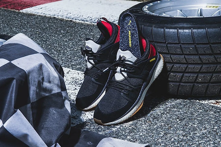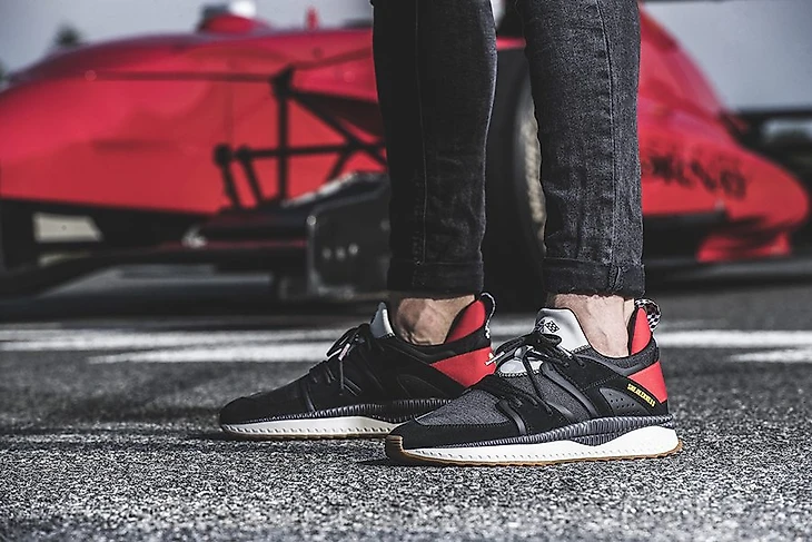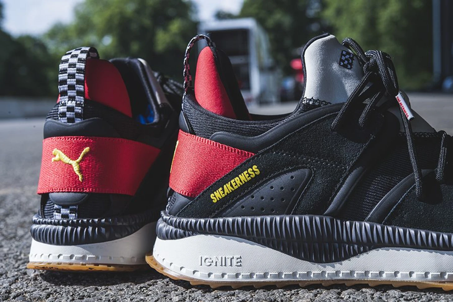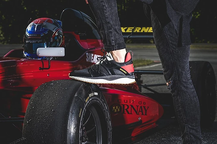 PUMA давно сотрудничает с автомобильными брендами и вдохновляется их историей. Бренд создает одежду и обувь для автомобильных команд Porsche, Ferrari и BMW. Теперь они объединились с большим кроссовочным фестивалем Sneakerness и продолжают развивать автомобильную тему со своим лимитированным кроссовочным паком, в котором будет выпущено 150 пар новой модели Tsugi Blaze. По задумке дизайнеров цвета пары — это отсылка к легендарному противостоянию «Формулы-1».