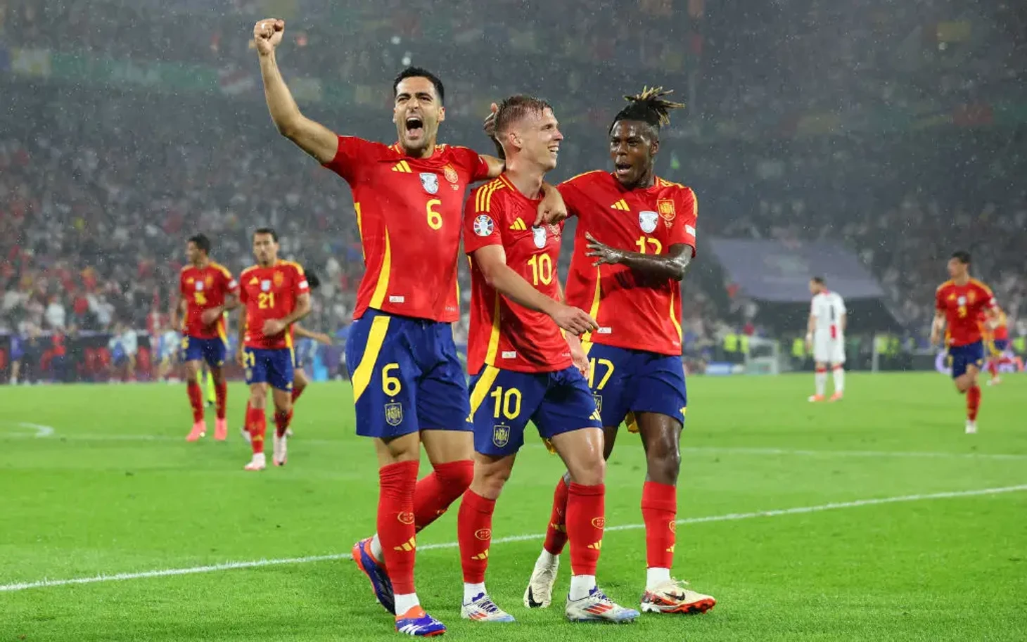 Сборная Испании: Унаи Симон, Дани Карвахаль, Робин Ле Норман, Дин Хейсен, Марк Кукурелья, Мартин Субименди, Микель Мерино, Педри, Нико Уильямс, Ламин Ямаль, Микель Оярсабаль.