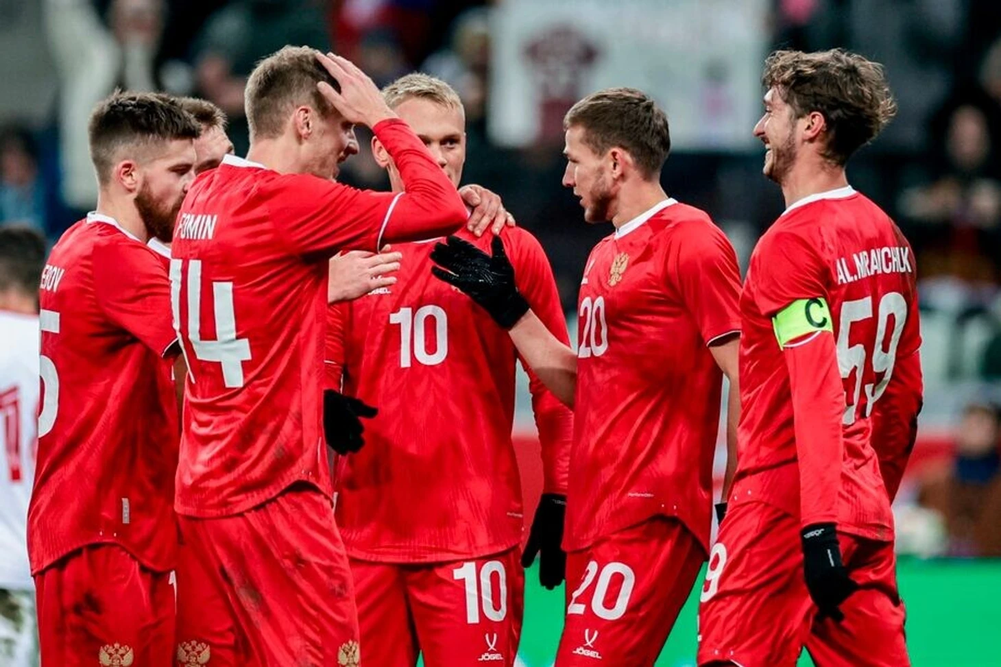 Сборная России: Матвей Сафонов, Данил Круговой, Максим Осипенко, Игорь Дивеев, Александр Сильянов, Матвей Кисляк, Антон Миранчук, Алексей Батраков, Лечи Садулаев, Иван Сергеев, Алексей Миранчук.