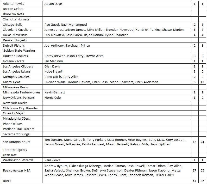 3. www.nba-allstar.com/ - самый полный источник по Матчам всех звезд, включая кто кого заменил из-за травмы.