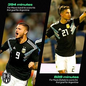 Чтобы забить первый гол за #Сборная Аргентины по футболу #Мауро Икарди потребовалось 394 минут,а #Пауло Дибала затратил 828 минут для своего дебютного гола