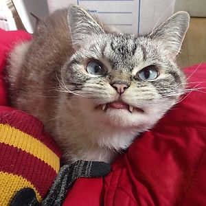 Перед вами кот по имени Локи с самым свирепым взглядом в мире. Виной всему верхние клыки животного, которые постоянно торчат из его рта, как у саблезубого тигра. Из-за необычных клыков Локи стали называть котом-вампиром. Его хозяйка Кейт говорит, что Локи она взяла в приюте, и ... Читать дальше тогда он уже был таким. Кейт публикует фото своего необычного питомца в Instagram, где Локи уже стал новой звездой.