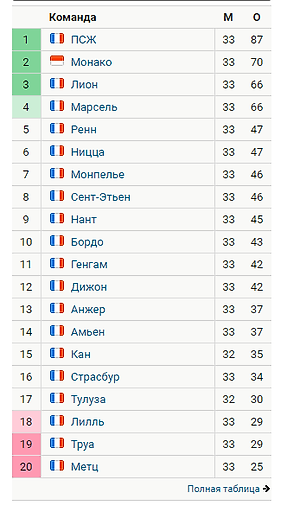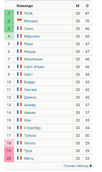 Друзья, как мне кажется, что я нашел ошибку в таблице чемпионата Франции - не может быть, чтобы у них только 4-я команда попадала в ЛЕ (у России 4-я и 5-я команды, например). Поправьте, пожалуйста, ведь на 5-е место прямо сейчас претендует аж 8 команд! =)