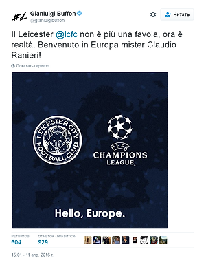 : «Лестер» это уже не сказка, а реальность. Добро пожаловать в Европу, мистер Раньери»