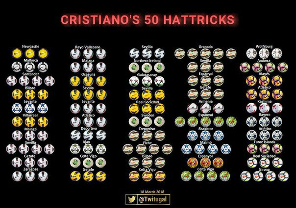 Кому #Криштиану Роналду забивал свои 50 карьерных хет-триков (покеры и пента-трики тоже считаются):