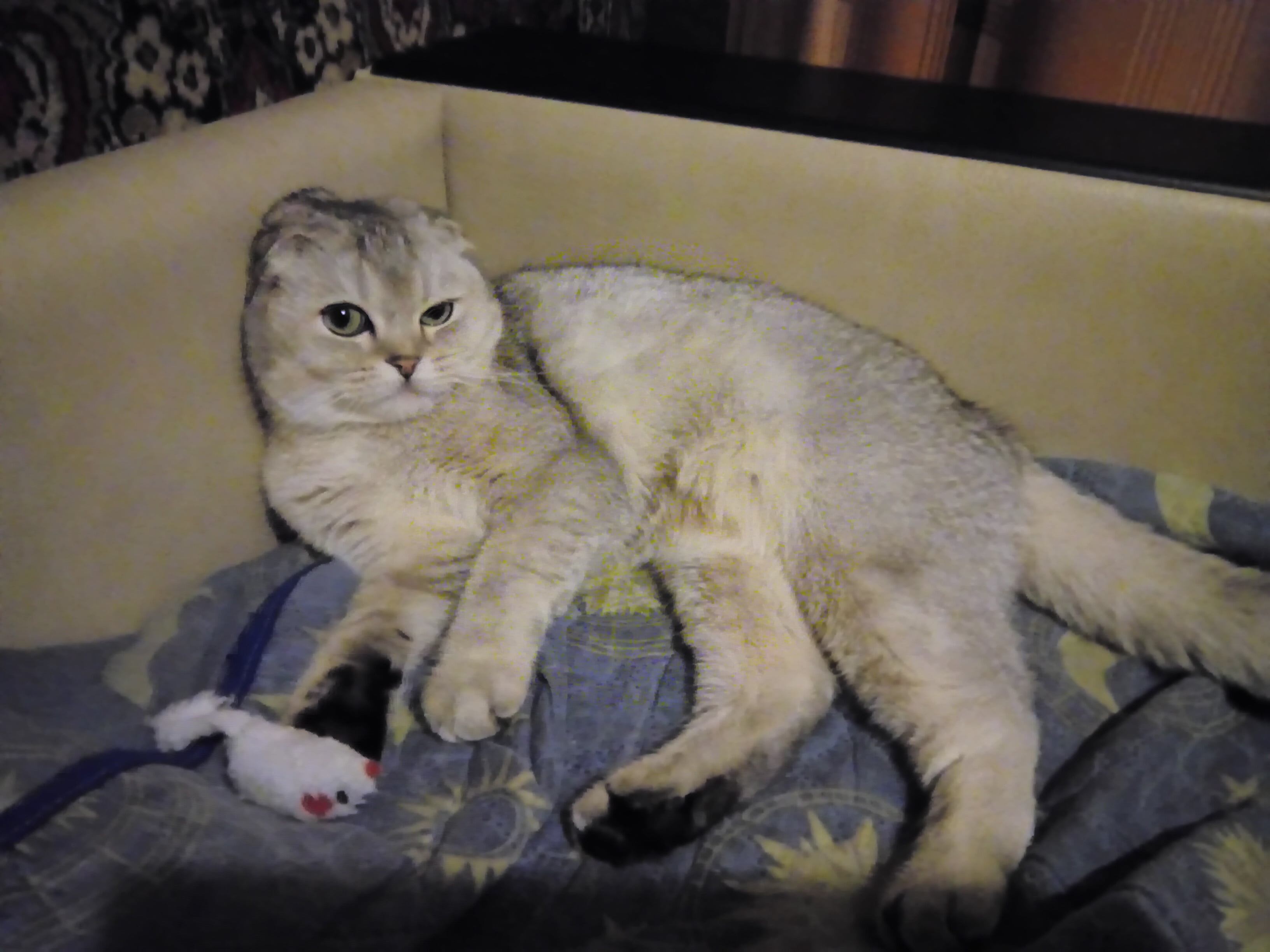 Скоро нам 5 месяцев.Мне тут прислали фото моей тёщи и тестя и поразило сперва что они вообще разные и если мама британка утончённая-хитрая пантера то папа просто кусок жирный и плюшевый добряк шотландец и вот у меня возник вопрос а зачем это так намешали?и вчера посмотрел передачу про шотланов и выяснилось что их нельзя между собой спаривать...потому что потомство будет гарантированно ... Читать дальше нежизнеспособное.Ну Ася я так понял на 95% примерно в маму окрасом и прожорливостью-гиперактивностью.но физически много от папы...она пошире...покрупнее..уши папины..ну и мурлычет на постоянной основе как папа.А так вся это искуственно выведенная людьми недоразумение конечно очень печально.Но Ася то не виновата что её родили по хотелкам человеков...и она старается быть хорошей и нравится мне.