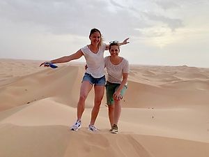 и швейцарская лыжница Татьяна Стиффлер осваивают пески Абу - Даби.